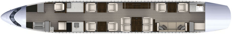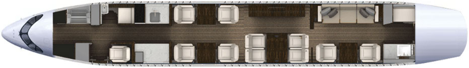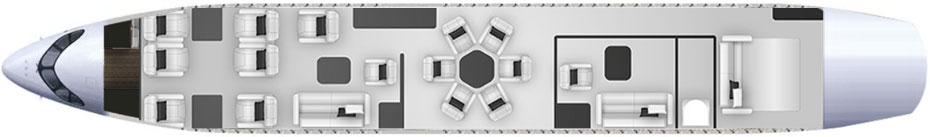 The spacious cabin also offers flexible design configurations for meetings,entertainment, and relaxation.